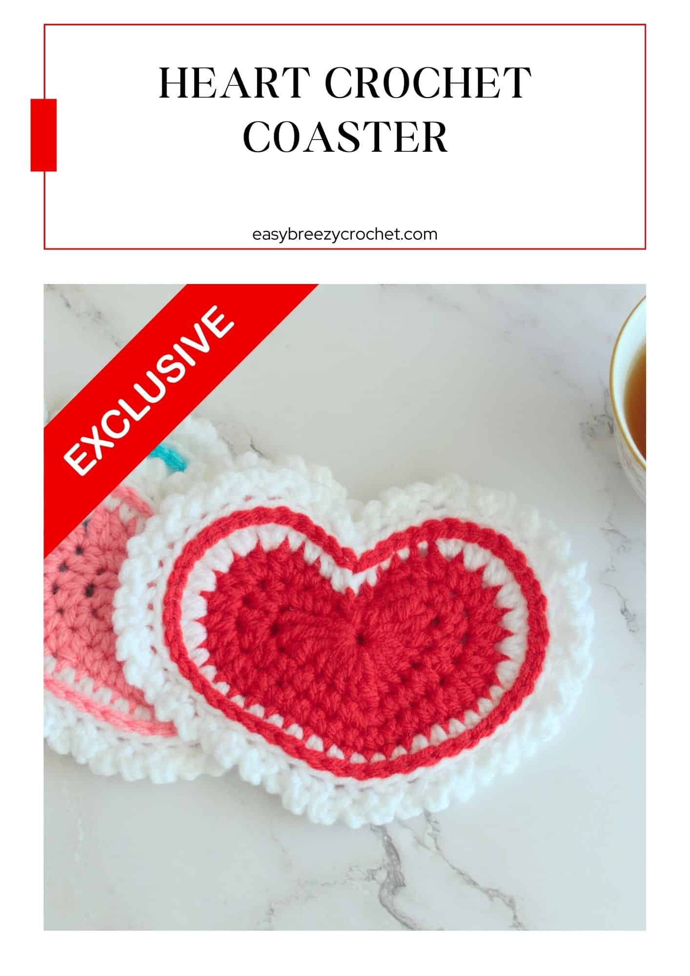 This crochet heart coaster pattern is available exclusively inside The Pattern Vault
