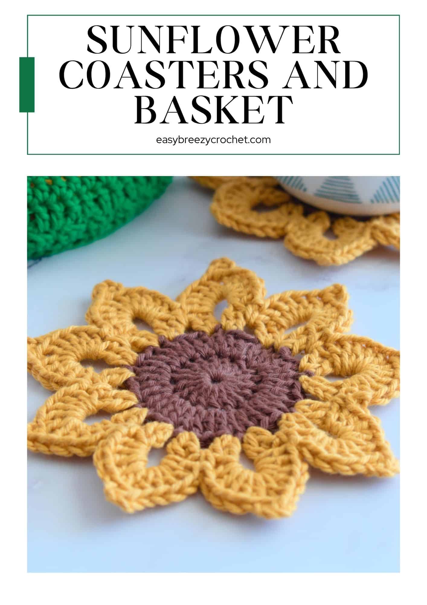 Below are the instructions for making these crochet sunflower coasters and basket.