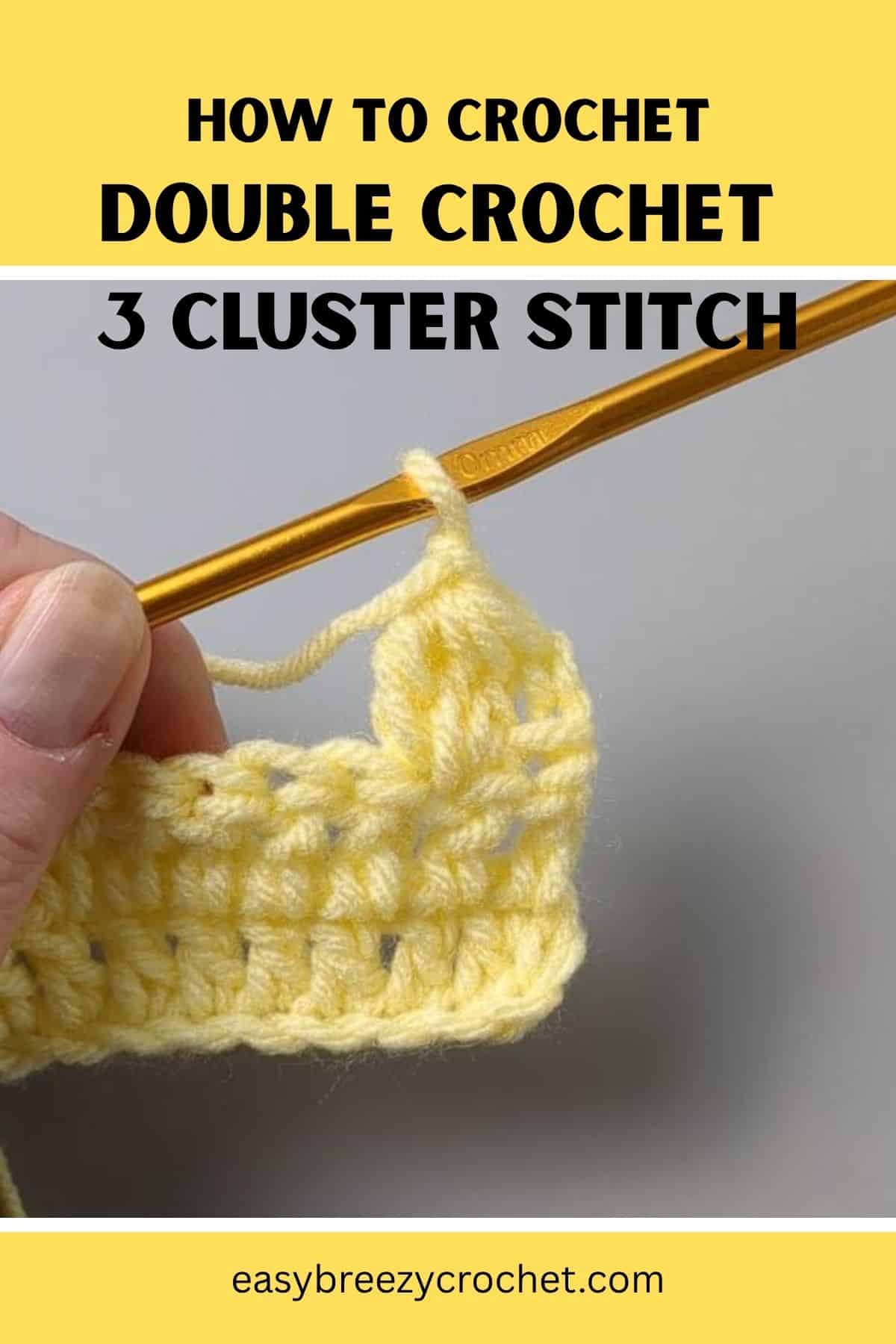 Learn how to crochet a double crochet 3 cluster stitch (dc3cluster) with this step-by-step tutorial. This stitch builds on the dc2cluster and creates a fuller, more textured look-perfect for blankets, scarves, and decorative patterns.